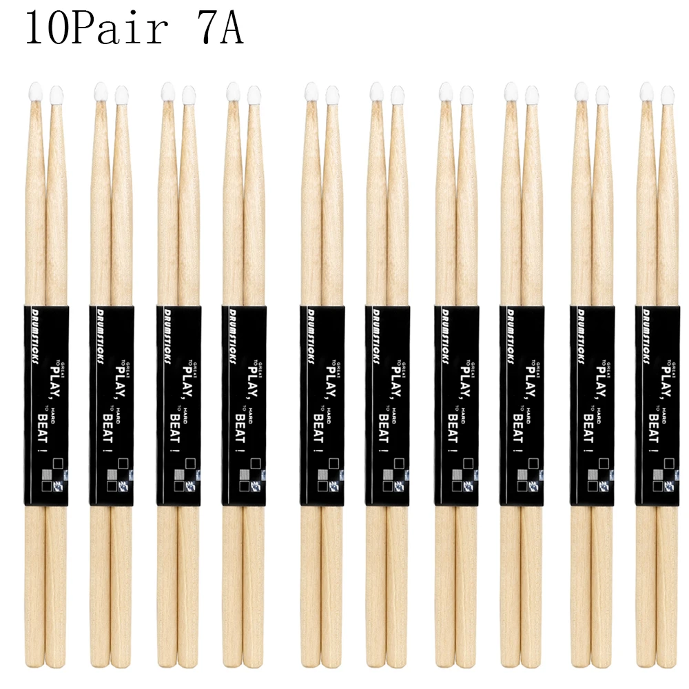 1/5/10 Pair Maple Wood Drum Sticks 5A 7A Electronic Drum Rack Nylon Tip Drumsticks Musical Sticks Percussion Instruments Tools