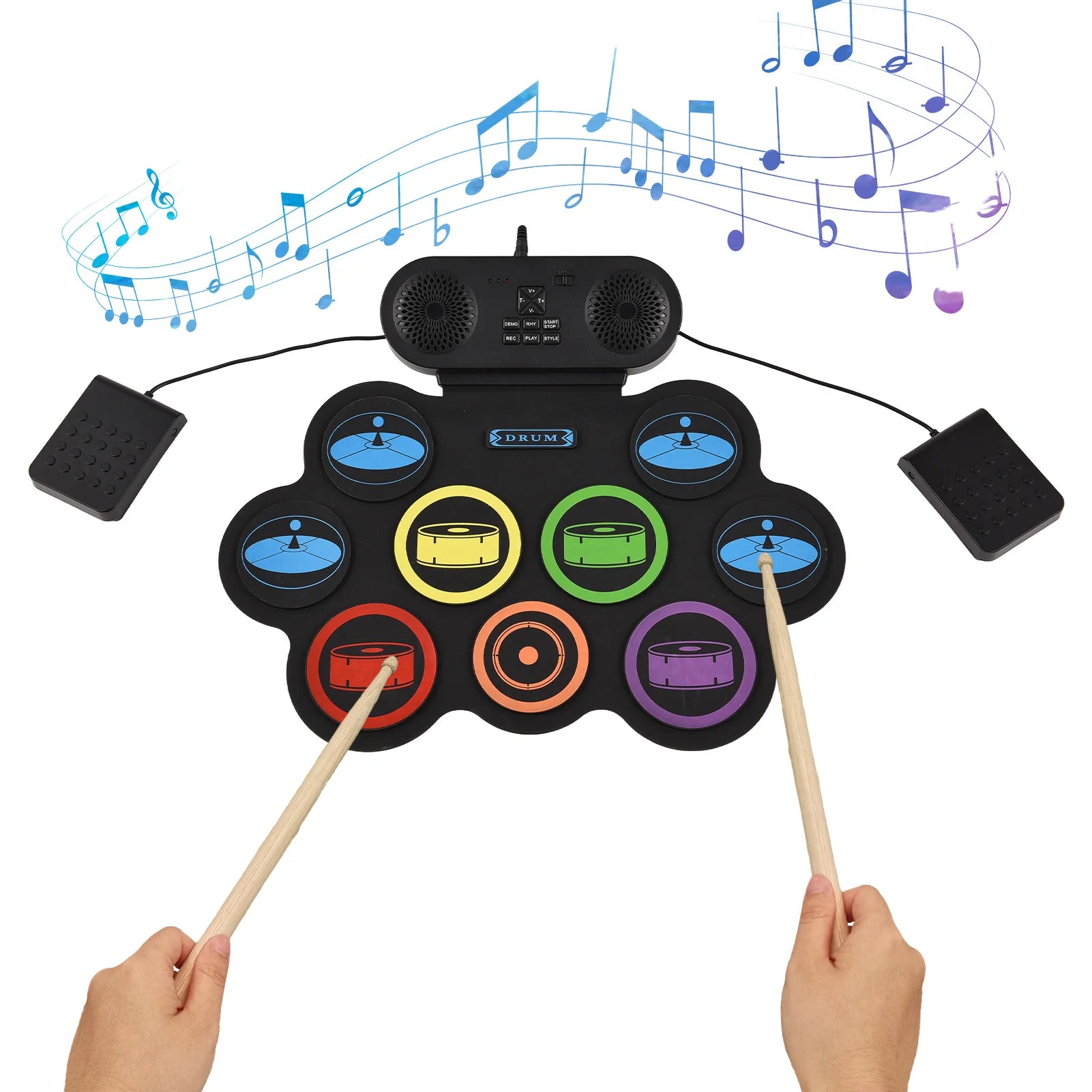 9 Pads Electronic Drum Set Hand Roll Drum Set Supports DTX Gaming/BT Dual Speaker 7 Drum Styles 6 Rhythms 10Demo Songs Pad Drum