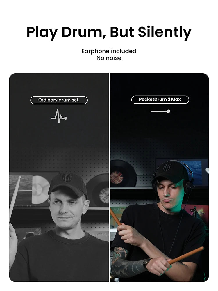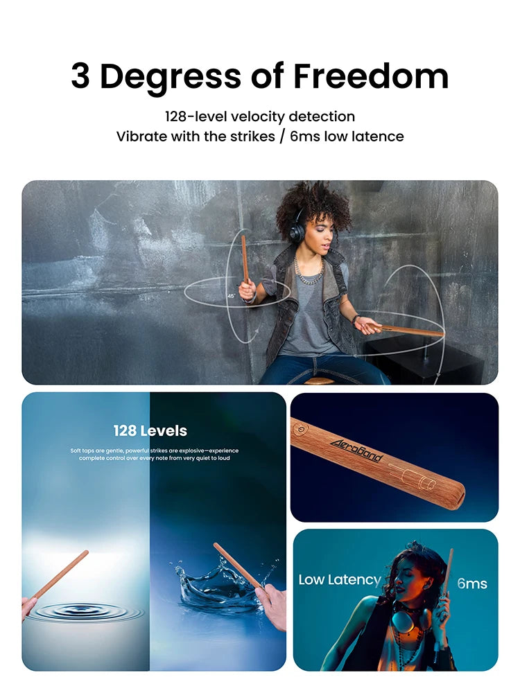 Juego de baquetas electrónicas digitales somatosensoriales AeroBand PocketDrum 2 MAX, baquetas, pedales y adaptador Bluetooth
