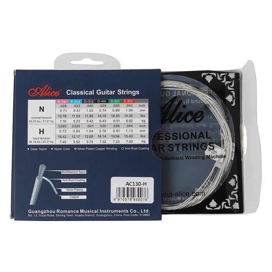Alice AC130 Professional Classical Guitar Guitarra Strings Sliver Plated Copper Wound Clear Nylon Normal High Tension 6 Strings