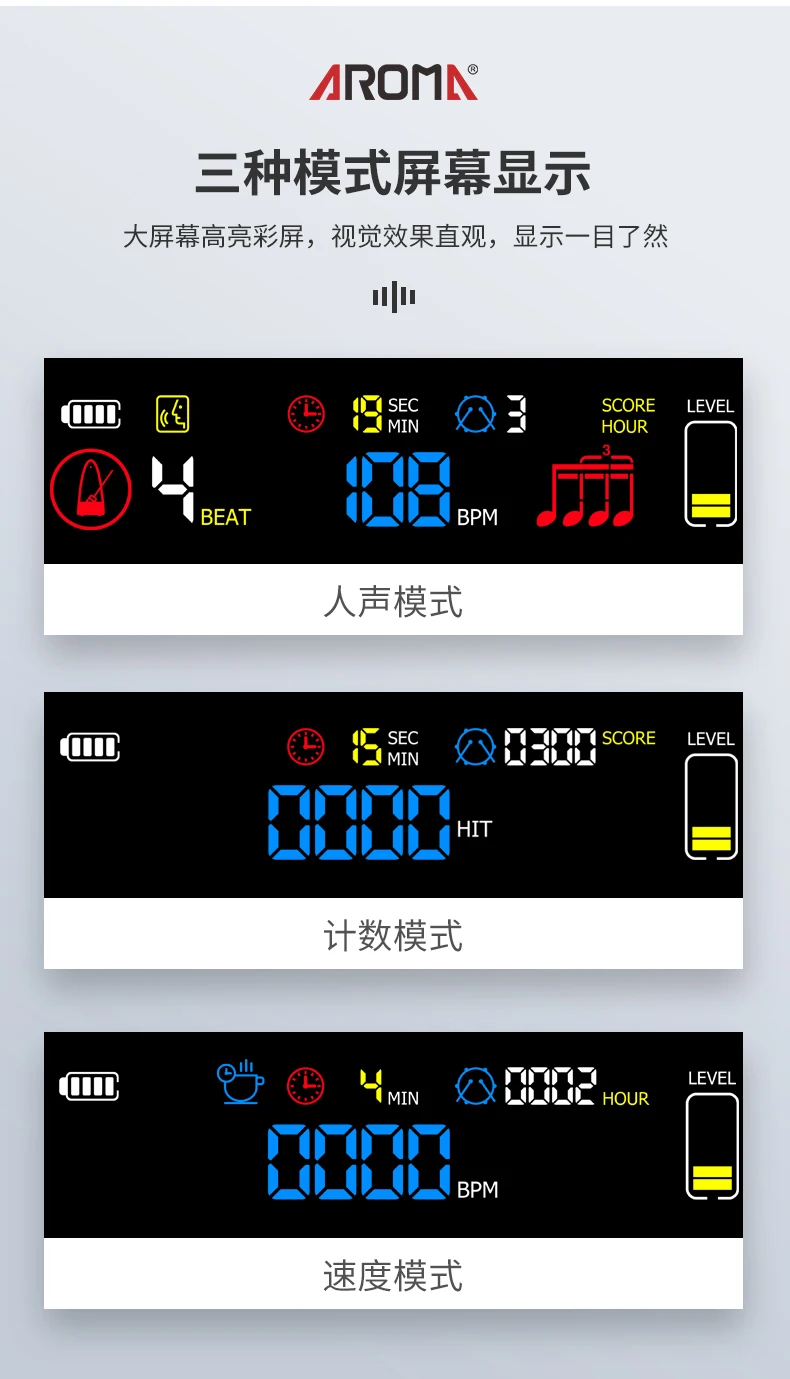 AROMA - Pad de batería electrónica ajustable con metrónomo digital y modo de práctica de conteo/velocidad