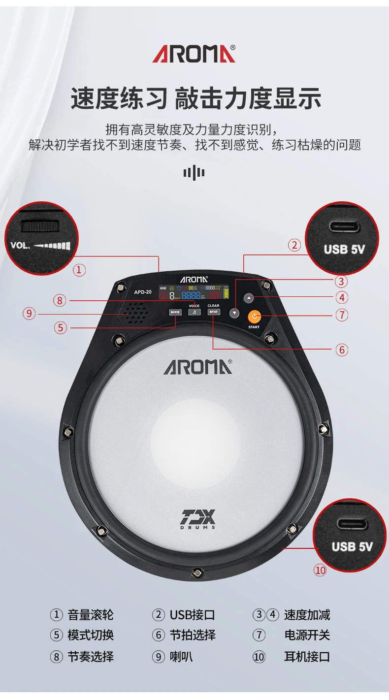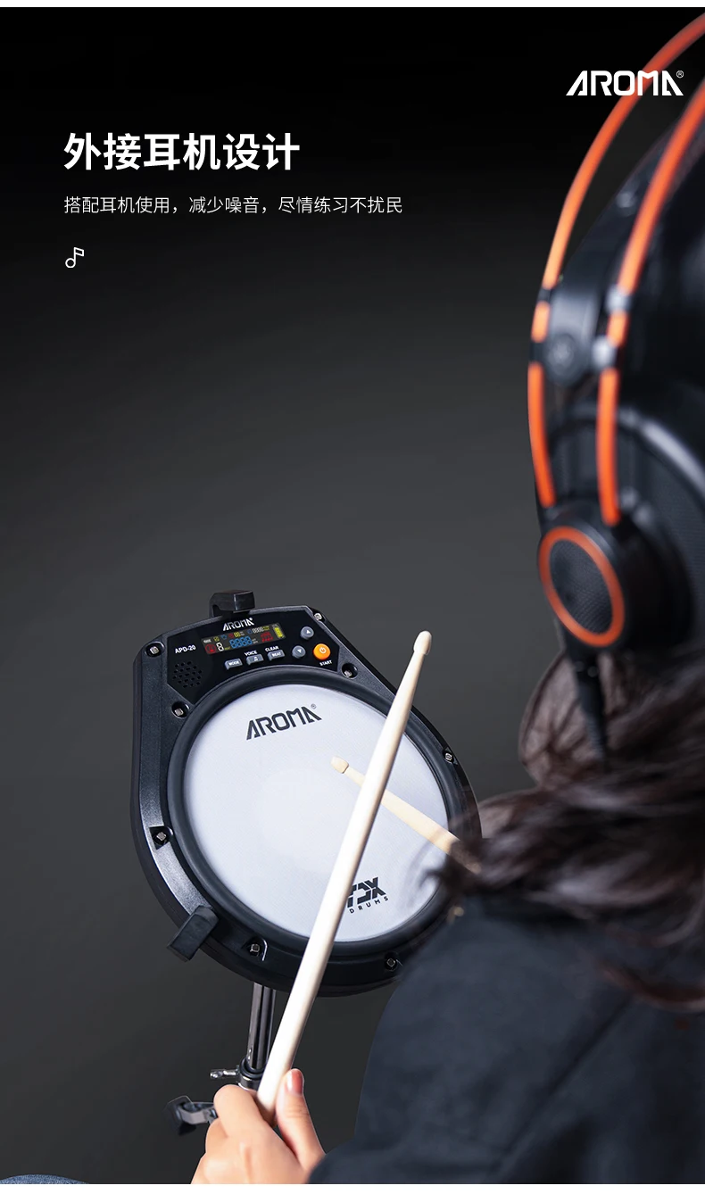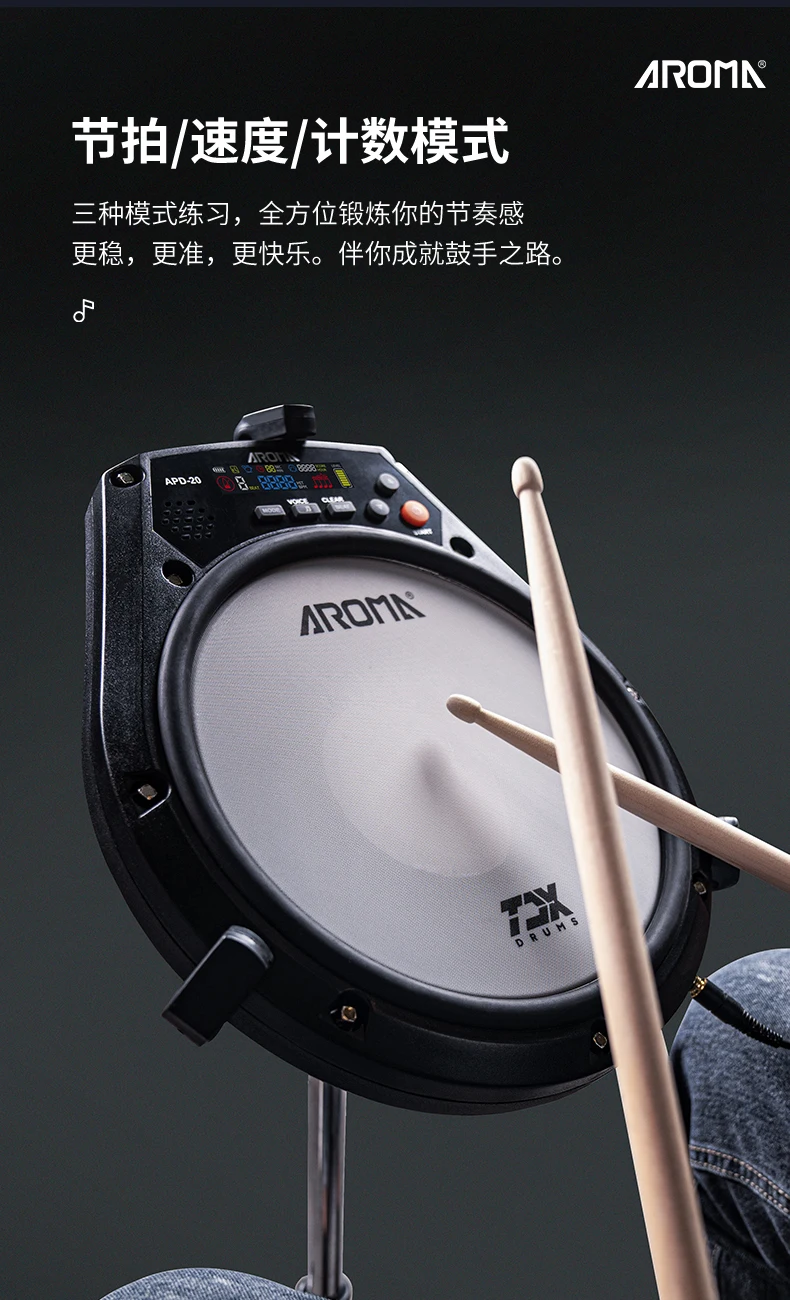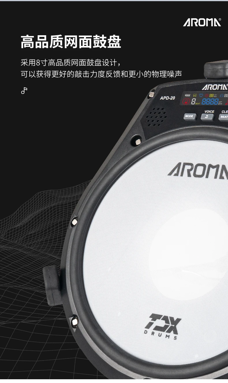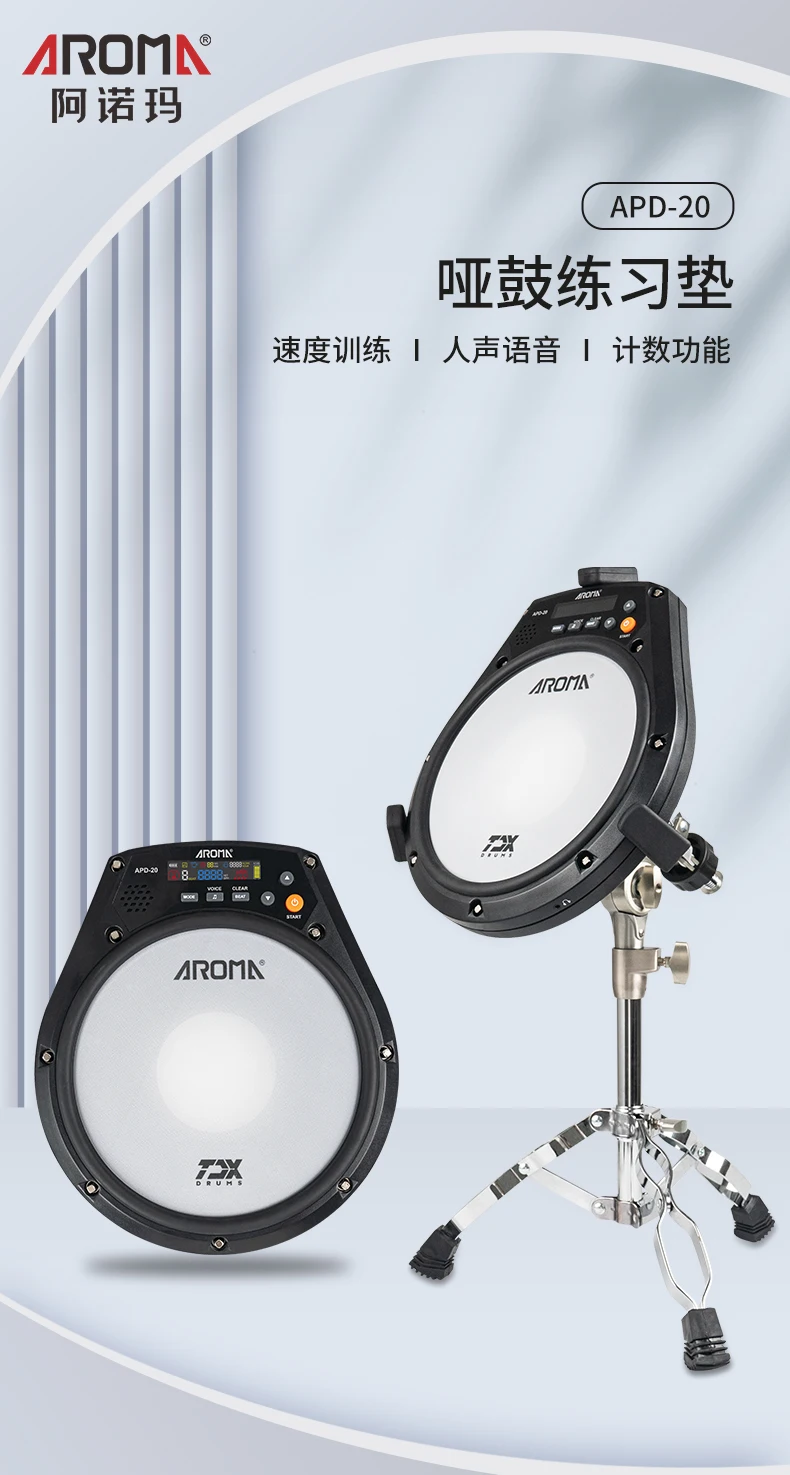 AROMA APD-20 Sordina electrónica para batería, pad de batería electrónico, batería incorporada, metrónomo, entrenamiento, percusión, piezas musicales