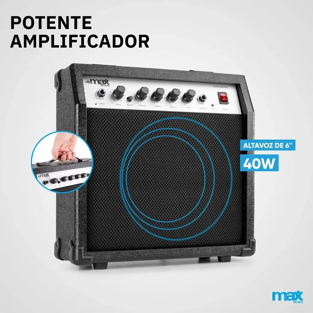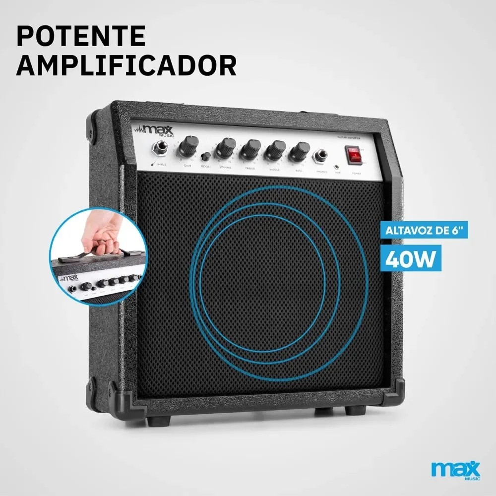 MAX GigKit - kit guitarra electrica iniciación, amplificador de 40w, funda transporte, afinador, cuerdas, palanca tremolo